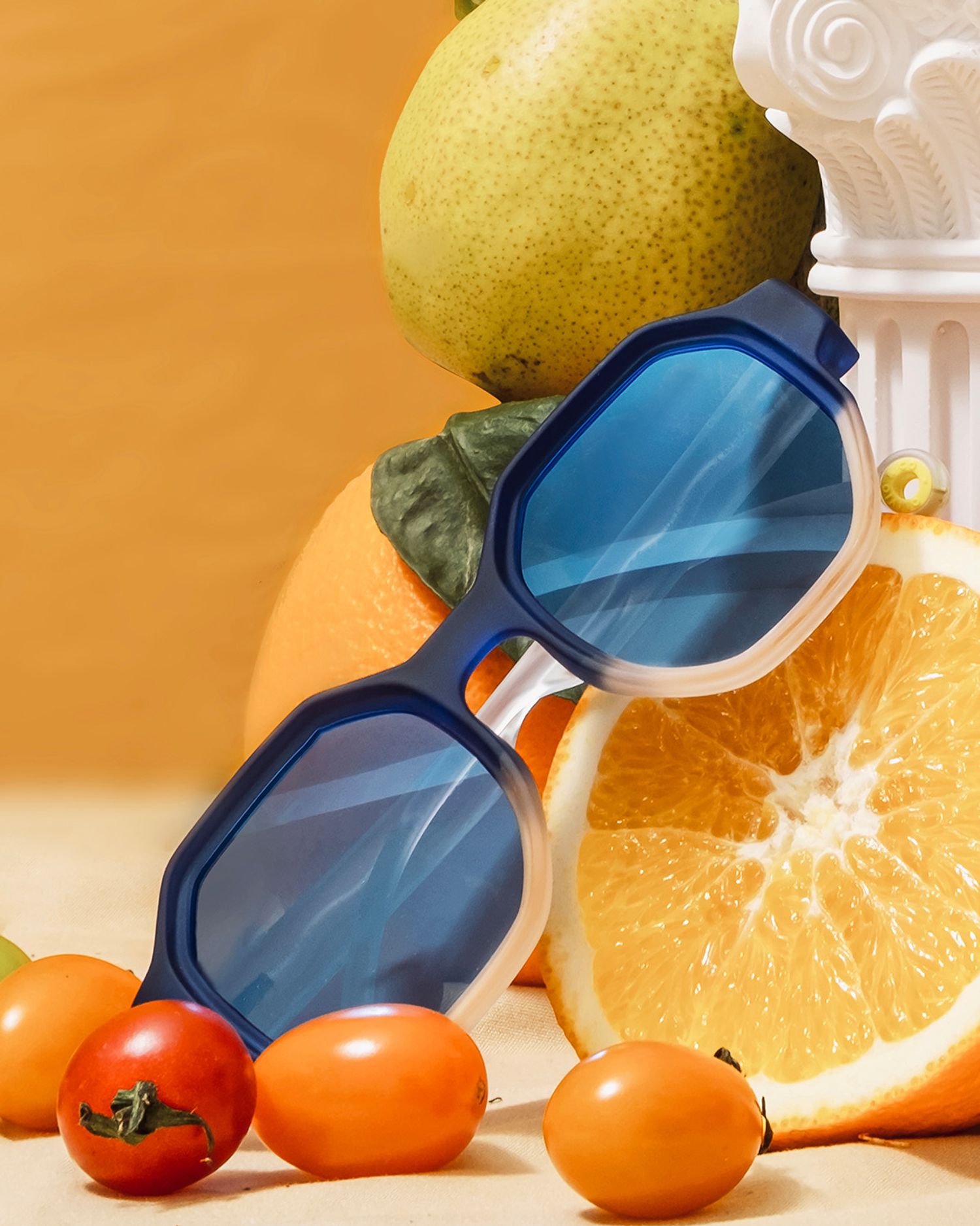 Inspired by the experimental Paper Cuttings art of French art master Henry Matisse, the frame design is modern and bold, the color matching is bright and classic, and the touch is soft and delicate. The iconic "O-ring" accessory at the end of the glasses legs leaves creative space for each pair of sunglasses.