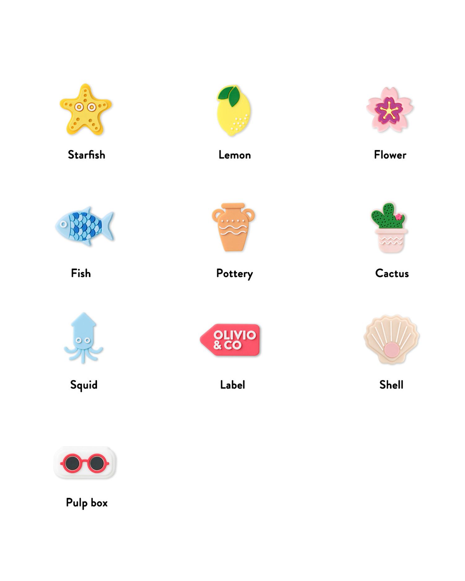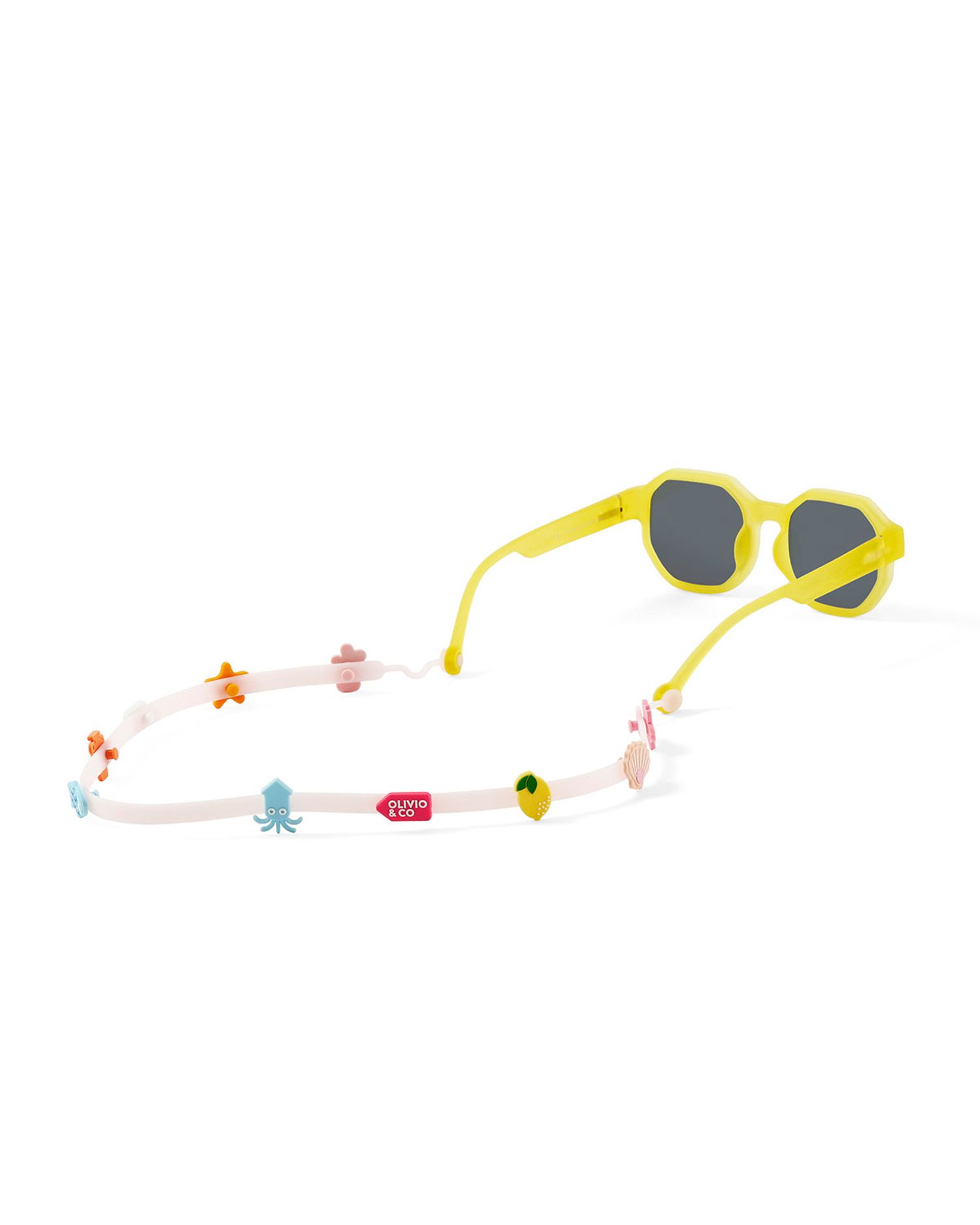 OLIVIO&CO eyewear accessories are made of skin friendly silicone material, which is flexible, stretchable, and durable, making them perfect for children to use on adventures. Integrated hanging chain, simple and beautiful. 10 detachable creative badges that children can freely combine, full of fun.